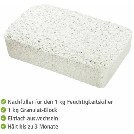L’époque des caves froides et humides est révolue. L’absorbeur-humidivore protège les murs, les meubles, la voiture et les textiles contre l’humidité, la moisissure et les odeurs désagréables de manière intense. L’absorbeur-humidivore est adapté aux pièces jusqu’à 50 m² environ. Grâce au bloc de granulés d’1 kilogramme fourni, la pièce concernée reste sèche pendant jusqu’à 3 mois. L’effet est immédiat, sans consommer d’électricité.