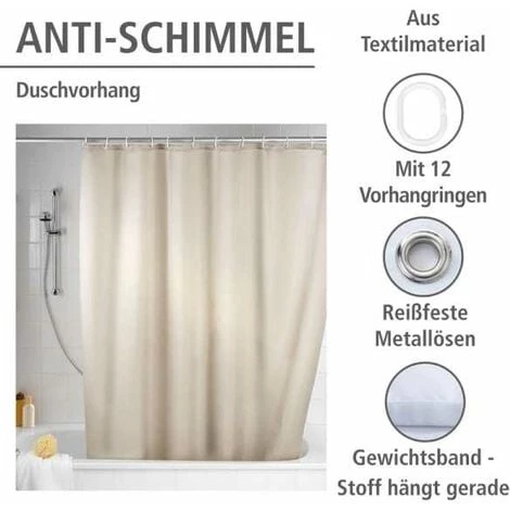 La nouveautĂ© mondiale de ce rideau particulier est le sensationnel « effet anti-moisissure » ! Ainsi, finie l’Ă©poque des rideaux de douche avec des traces de moisissure. EsthĂ©tique et efficace, cet accessoire est en outre dotĂ© d’un revĂŞtement antibactĂ©rien. Grâce Ă cette innovation, Wenko fait entrer hygiène et design dans la salle de bain. D’une largeur de 180 cm, le rideau de douche classique en beige discret est parfaitement adaptĂ© aussi bien pour les douches que les baignoires. Le rideau de douche aux finitions haut de gamme est fabriquĂ© en polyester particulièrement robuste. La matière est hydrofuge grâce Ă l’ennoblissement de sa surface. Il est agréé TĂśV, facile Ă entretenir et lavable Ă 30 °C. L’ourlet supĂ©rieur est dotĂ© d’un rebord Ă trous renforcĂ© et d’oeillets mĂ©talliques inox. Un ruban alourdisseur en caoutchouc Ă©cologique (au lieu d’une chaĂ®ne en plomb) Ă l’extrĂ©mitĂ© du bas donne au rideau sa forme. La livraison comprend 12 anneaux en plastique blanc pour rideau de douche.