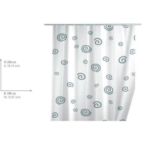 Le rideau de douche Escargot confère un design discret à la salle de bain. D’une largeur de 180 cm, il est adapté aussi bien pour les douches que pour les baignoires. Le rideau de douche aux finitions haut de gamme est fabriqué à base d’un tissu polyester particulièrement robuste. La matière est hydrofuge grâce à l’ennoblissement de la surface. Il est facile à entretenir et lavable à 30 °C. L’ourlet supérieur est doté d’un rebord renforcé à trous et d’oeillets métalliques inox. Un ruban alourdisseur à l’extrémité du bas donne au rideau sa forme. La livraison comprend 12 anneaux plastiques blancs pour rideau.l: 200 cm x L: 180 cm