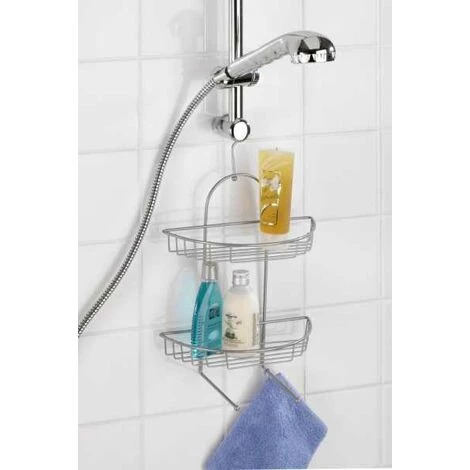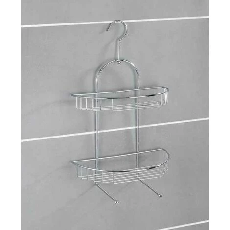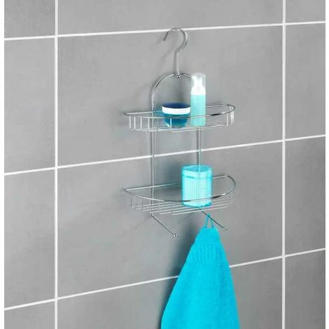 Le serviteur de douche pratique Kuopio offre un grand espace de rangement pour les ustensiles de douche. Les deux corbeilles de rangement en demi-lune pour le gel douche et le shampoing, le savon et les éponges ainsi que 2 crochets pour les gants de toilettes gardent tous les accessoires à portée de main. Grâce au crochet mobile, la tablette de douche peut facilement être suspendue sur la barre ou la cabine de douche.l: 28 cm x H: 43 cm x P: 15,5 cm