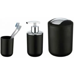- Set composé d’un gobelet à brosser les dents, d’un distributeur de savon et d’une poubelle cosmétique