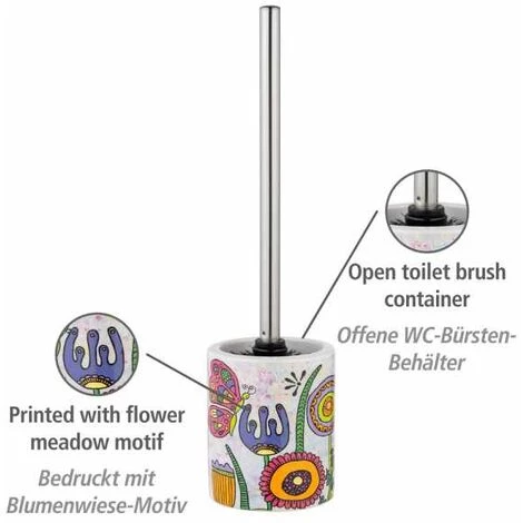 - Un accessoire esthétique et coloré : Le kit d’accessoires pour WC Rollin’Art Full Bloom de WENKO représente en différentes couleurs la diversité animale et végétale d’une prairie fleurie. Avec ses habitants et ses fleurs exotiques, ce porte-brosse WC devient un élément phare dans la salle de bain et les toilettes d’invités.