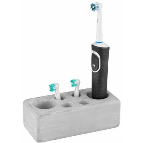 - Matériaux de haute qualité : Le support pour brosses à dents massif et solide en béton résistant offre une bonne tenue à deux brosses à dents électriques. Le matériau robuste est muni de deux ouvertures de la bonne taille dans lesquelles vous pouvez poser confortablement la brosse à dent électrique. Entre les deux brosses à dents, il y a de la place pour ranger jusqu’à 4 têtes à brosses.