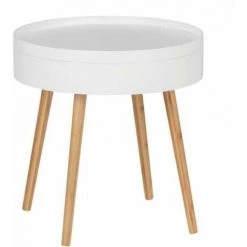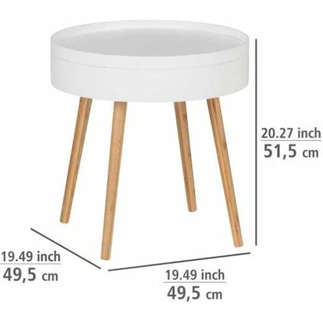 - Étendue de la livraison : 1 x table d’appoint Finja avec compartiment de rangement et tablette amovible, dimensions (L/h x l) : Ø 49,5 x 51,5 cm, en blanc/nature