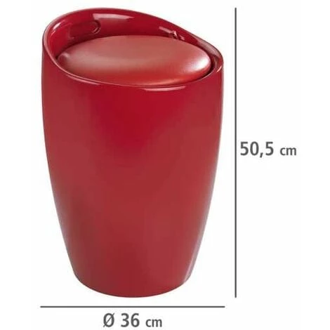 Le tabouret de salle de bain et panier à linge tendance Candy est fabriqué en plastique ABS ultra résistant. Avec sa couleur rouge lumineuse, cet accessoire est la touche déco de la salle de bain. Pratique, le tabouret de salle de bain offre pour le linge un vaste d’espace de rangement sous la surface de siège. Le sac à linge amovible propose un espace de stockage de 20 litres pour le linge en attendant le prochain lavage. Rembourrée, sa surface de siège généreuse est une invitation permanente à la détente. Le tabouret est également parfaitement adapté comme un espace de rangement pratique supplémentaire.Ø: 36 cm x H: 50,5 cm