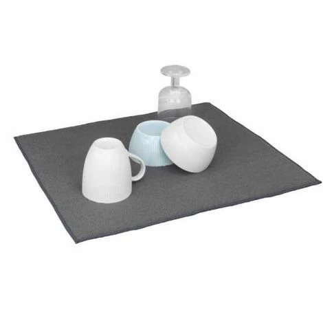 Évolution pour votre cuisine : Avec le tapis d’égouttage en microfibres Miko de WENKO, vous disposez du support idéal pour les casseroles, poêles, la vaisselle, les couverts et les verres lavés. Tous ces articles sèchent sans bords calcaires ni flaques d’eau. Ceci, tout en ménageant le plan de travail ou la surface de lavage, qui restent ainsi toujours sèches, car les microfibres peuvent absorber un multiple de leur propre poids. Après avoir fait la vaisselle, placez simplement la vaisselle humide sur votre nouveau tapis. Les microfibres absorbantes absorberont l’eau. Ainsi, vous évitez la formation de flaques d’eau sur la surface de l’évier et les bords calcaires sur les verres. Vos articles de lavage sèchent plus vite. Le pratique tapis d’égouttage pour vaisselle est d’utilisation souple et pliable. Ceci vous garantit un rangement peu encombrant – pourquoi pas dans l’un des commodes organiseurs de lavage de WENKO ? En gris tendance, cette belle aide de cuisine transforme la cuisine en un véritable lieu de bien-être. La vaste gamme de produits de WENKO propose de nombreux ustensiles de cuisine assortis pour vous faciliter le lavage de la vaisselle.
