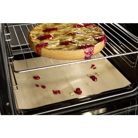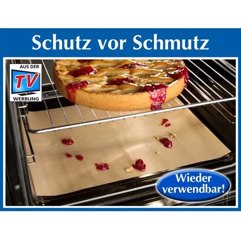Avec le film de protection pour le four, vous n’aurez plus besoin de procéder au nettoyage laborieux du four Les restes brulés de cuisson de marque ou de grillage feront désormais partie du passé. Car si maintenant quelque chose devait couler du poulet rôti, de la pâtisserie, gâteau aux prunes ou du pudding, les restes atterriront en toute sécurité sur l’efficace feuille spéciale. La feuille est simplement posée sur la base du four. Après la cuisson, la feuille peut être facilement retirée du four et ce dernier restera propre. La feuille peut être facilement essuyé ou nettoyé dans le lave-vaisselle. Cet aide pour la cuisson résiste à la chaleur jusqu’à 260 ° C, et est adapté à tous les fours conventionnels. En outre, la feuille avec un revêtement spécial est réutilisable.l: 33 cm x L: 45 cm