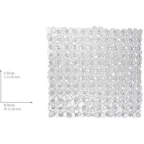Le tapis de douche de la série d’accessoires de salle de bain Paradise, en transparent tendance, apporte plus de sécurité et de confort sous la douche. La Céramique sanitaire moderne se caractérise par sa surface dure et lisse, qui, en présence d’eau et de savon, peut se transformer rapidement en une dangereuse patinoire. Le tapis présente une surface agréable au toucher dotée d’une structure antidérapante, qui empêche efficacement de glisser sous la douche et dans la baignoire et garantit ainsi une stabilité fiable. Ses ventouses sur sa face inférieure lui confèrent son adhérence et l’empêchent de glisser. De forme carrée aux dimensions de 54 x 54 cm, le tapis de douche a des dimensions adaptées aux bacs de douche courants.