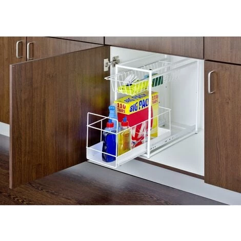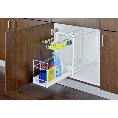 Installation facile dans les armoires de base de cuisine. Pour l’assemblage sur le placard. Deux paniers télescopiques pour le stockage.