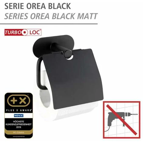 L’ingénieux système de fixation murale Turbo-Loc® de WENKO propose des accessoires de salle de bain et des tablettes de rangement décoratifs, qui se fixent facilement au mur – sans vis, sans percer de trous et sans chevilles. La fixation est un jeu d’enfants. La fixation murale Turbo-Loc® est un système de collage offrant une adhérence extrêmement forte sur toutes les surfaces lisses. Décoller simplement le film de protection du tampon autoadhésif, fixer le support à l’endroit souhaité et presser. Le tampon adhésif se décolle à nouveau sans laisser de traces. Grâce au système à tampon adhésif spécial, les ustensiles de salle de bain peuvent durablement porter des charges. Avec la série d’accessoires de salle de bain de haute qualité Orea, conférez à votre maison un nouveau style de vie. Désormais, une clarté moderne trouvera son chemin dans votre salle de bain et votre WC d’invités. Et les aides de salle de bain stylées allient fonctionnalité et qualité. La série d’articles de salle de bain est fabriquée en acier inox de qualité supérieure, qui est 100% inox. Tous les accessoires Home au coloris noir sublime sont des pièces design originales dans le style chic industriel. Le fini mat confère à votre salle de bain une esthétique parfaite. Le porte-rouleaux de papier hygiénique Orea tient le papier hygiénique toujours à portée de main à l’endroit souhaité. Le rouleau de papier hygiénique est simplement inséré sur le porte-rouleaux, et peut être prélevé en fonction des besoins. Pour la protection contre la poussière, le porte-rouleaux de papier hygiénique est pourvu d’un couvercle pratique. Pour ce produit, vous bénéficiez d’une garantie de 10 ans à compter de la date d’achat. La garantie porte sur tous les vices de matériau et de fabrication qui altèrent le bon fonctionnement. Sont exclus les dommages résultant d’un maniement incorrect ou de l’usure naturelle. La garantie ne restreint aucunement vos droits à la garantie légaux. Bien d’autres articles de la série Turbo-Loc® Orea de WENKO sont disponibles pour cet accessoire. En cas de garantie, veuillez renvoyer gratuitement l‘article accompagné du ticket de caisse et convenablement emballé pour le transport à l‘adresse suivante : Wenko-Wenselaar GmbH & Co. KG · Abteilung « Retouren » Im Hülsenfeld 10 · 40721 Hilden, Allemagne [email protected]